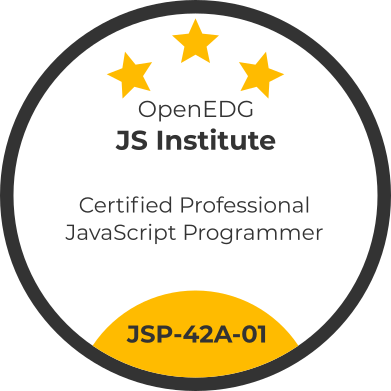 When you pass one of our exams (e.g. JSE™ or JSA™), you will qualify for an OpenEDG JS Institute badge! You will then receive an email from Credly by Pearson, which includes instructions on how you can redeem your badge and pin it to your Credly by Pearson account. You can share your badge via Facebook, LinkedIN, and Twitter, or embedded it in your website.